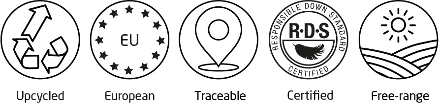 Jedes Produkt ist mit einem speziellen Code gekennzeichnet, der Aufschluss sowohl über die Daunenqualität als auch die Herkunft der Daunen gibt. Der Code ist in Abschnitte unterteilt, die jeweils unterschiedliche Bedeutungen haben.