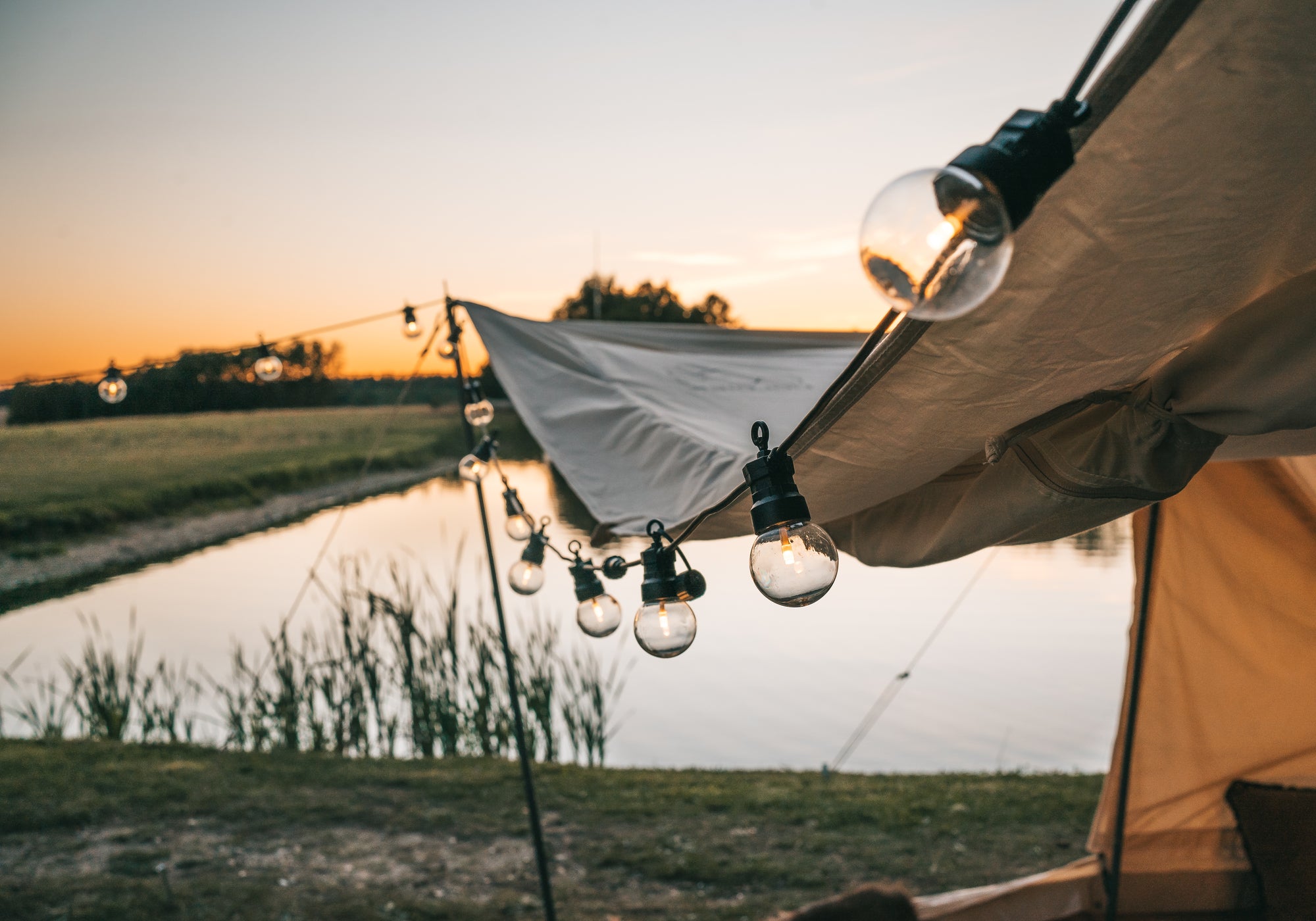 Stell dir vor, du wirst geweckt von Vogelgezwitscher und das Rascheln der Bäume, inmitten der Natur, bist aber umgeben von vielen schönen Dingen – wie in einem Luxushotelzimmer. Das ist es, worum es beim Glamping geht. Geräumige und helle Baumwollzelte eingerichtet mit weichen Decken und Kissen, Laternen mit Kerzenlicht, die vom Spiegel auf dem Nachttisch reflektieren. Keine Rückenschmerzen aufgrund eines Tannenzapfes, der unterm Zelt nicht weggeräumt wurde. Du wachst in einem richtigen Bett mit weichen Kissen, Laken und einer Decke auf.