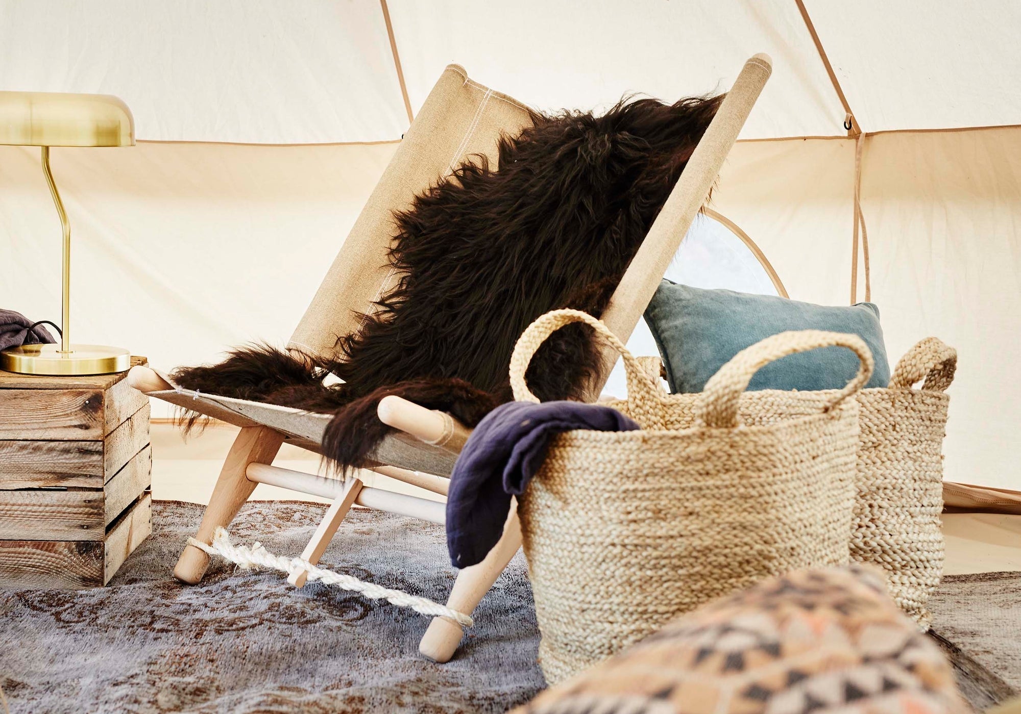 Füge dem ganzen einen letzten Schliff hinzu, um Gemütlichkeit im Zelt zu erzeugen.