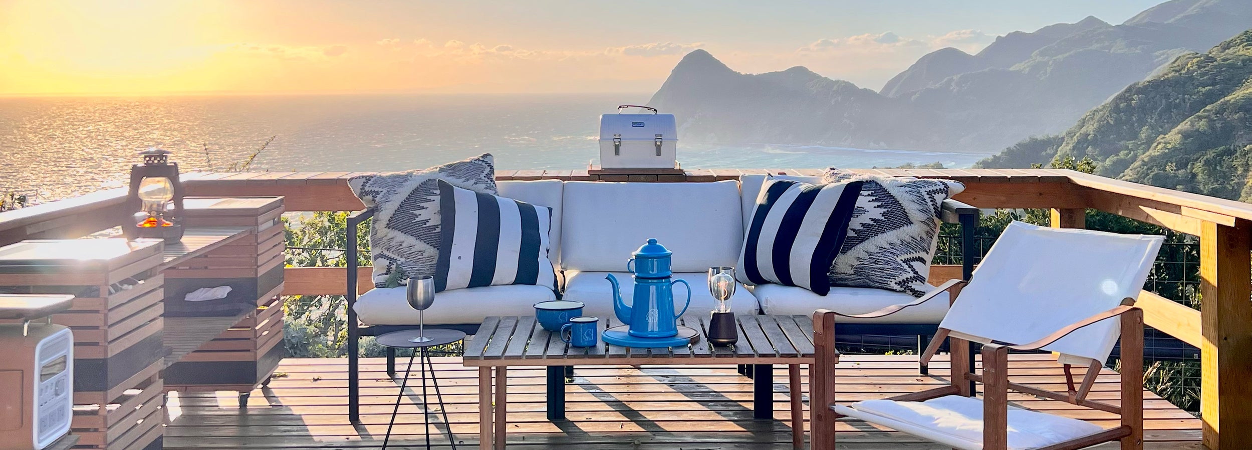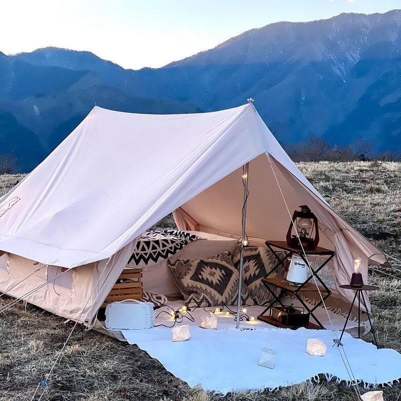 Mein Camping-Motto lautet: "Zelten, als ob du dich in deinem Wohnzimmer entspannen würdest". Jedes Wochenende packe ich meine Campingausrüstung und -möbel in mein Auto und reise auf der Suche nach schönen Landschaften durch Japan. Zu jeder Jahreszeit suche ich nach einem Platz mit toller Aussicht, und wenn ich ihn gefunden habe, schlage ich mein Glamping-Zelt auf und stelle meine Lieblingsmöbel so auf, dass sie perfekt in die Umgebung passen. So entsteht das perfekte Heim fernab von zu Hause.