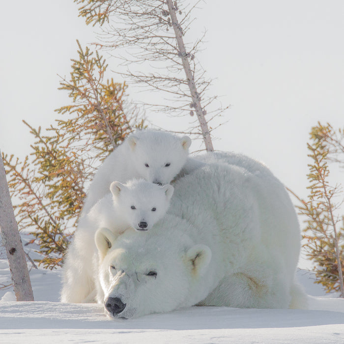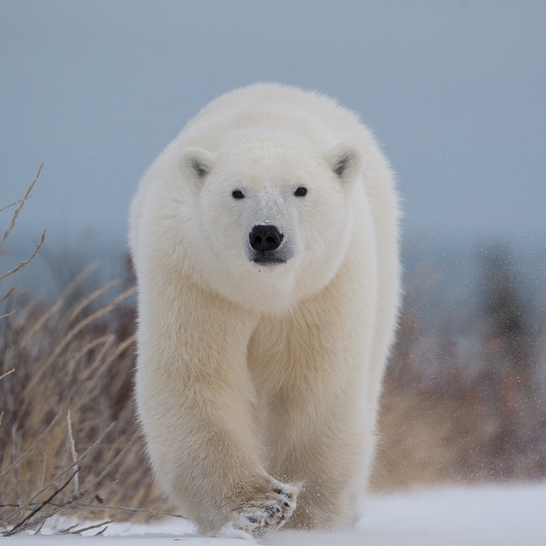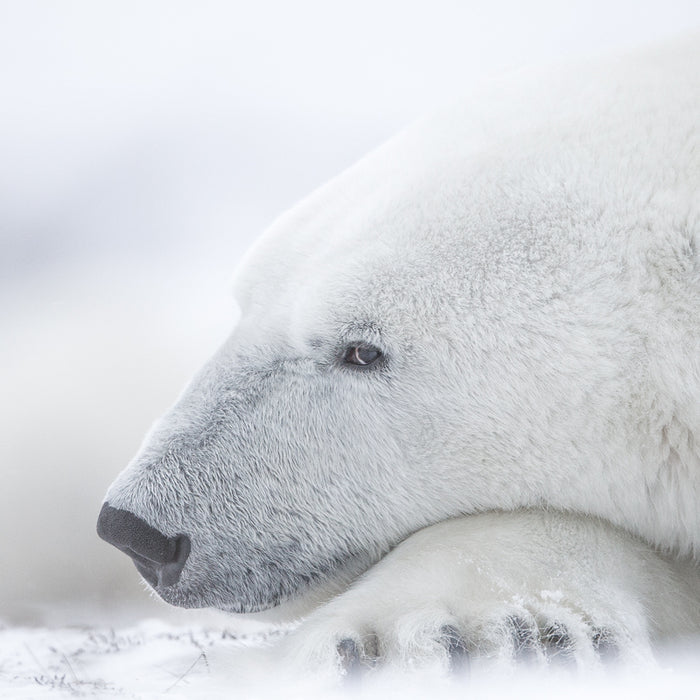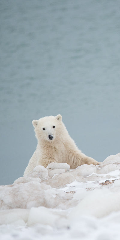 Der Eisbär ist DAS Symbol der Arktis. Majestätisch, selbstbewusst in seinem unwirtlichen Lebensraum und gefürchtet von anderen Tieren, aber auch vom Menschen, steht er an der Spitze der Nahrungskette. Eisbären leben in einer der kältesten Umgebungen der Erde und sind auf eine wärmende Fettschicht angewiesen, die von dickem, isolierendem Fell bedeckt ist. Sogar an der Unterseite ihrer Pfoten wächst Fell, das sie vor kalten Oberflächen schützt und ihnen einen guten Halt auf dem Eis bietet. Das strahlend weiße Fell des Eisbären sorgt für eine gute Tarnung in Schnee und Eis.